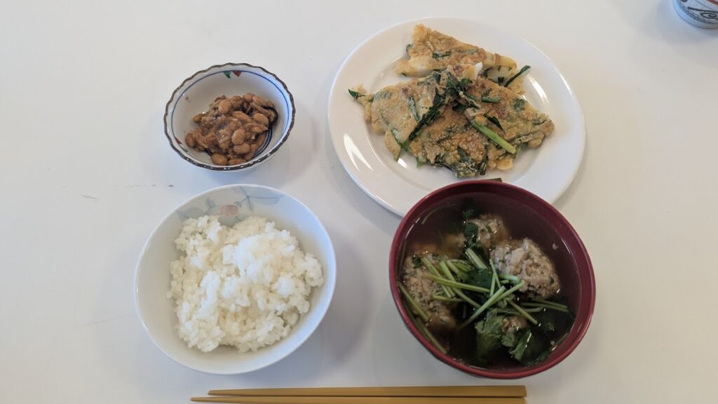 納豆つくねのすまし汁・納豆と長芋のチヂミ・そぼろ納豆