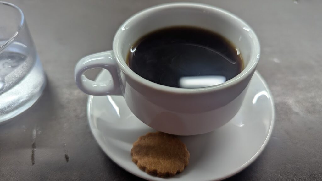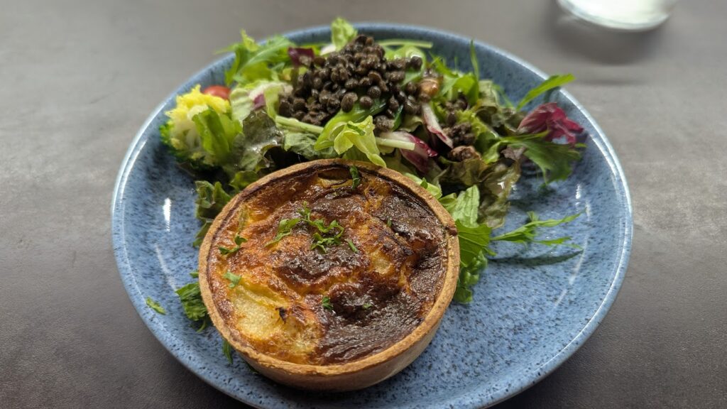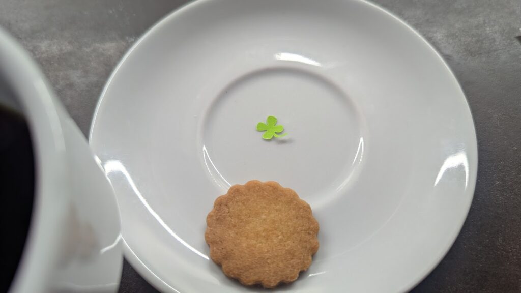 キッシュも美味しく、コーヒーのカップの下にクローバーが♡