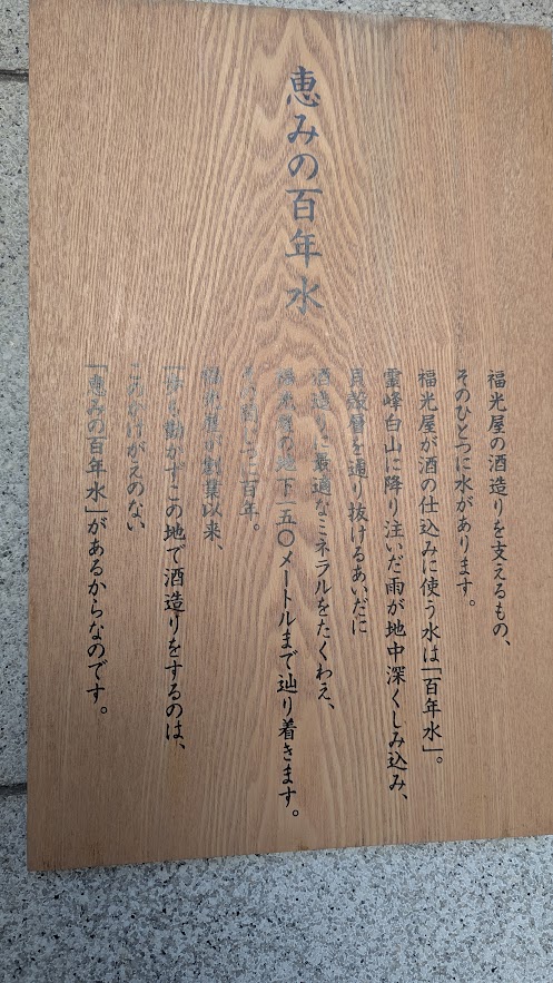 霊峰白山に降り注いだ雨が地中深く染み込み 百年かけて福光屋山の地下にたどり着く「百年水」の試飲など
